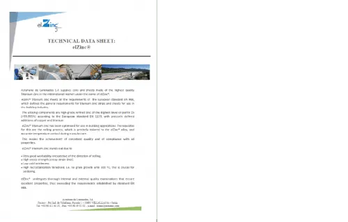 Specifically designed and produced for architectural application, all elZinc products are superior-grade, refined titanium zinc.