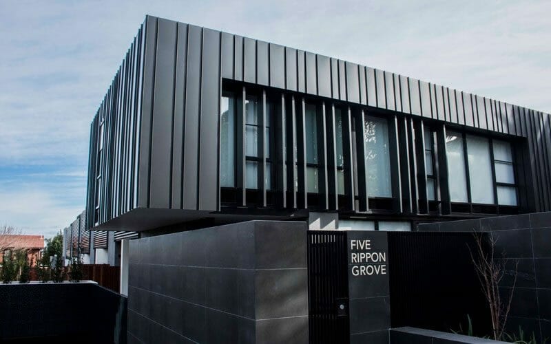 Rippon Grove Apartments Architect: David Watson Architects Builder: Balmain and Co. Installer: Rhinoclad Cladding profile: Standing Seam Material: Black Aluminium