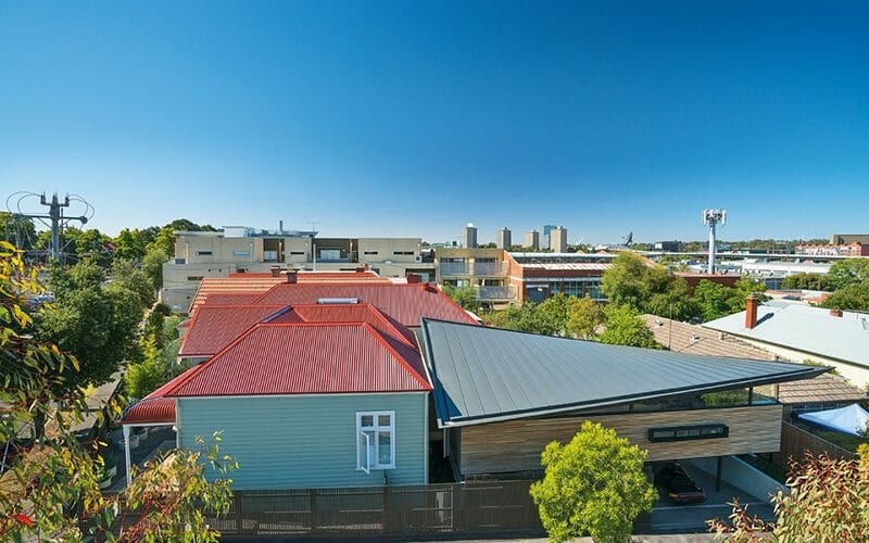 Instead of “business up front”, it’s Edwardian style weatherboard and in place of a “party down back”, we find a contemporary architectural wonder.