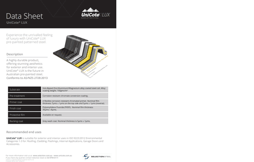 Designed to suit Australian high-end architecture, UniCote LUX is a luxury pre-painted steel offering architectural aesthetics that go beyond simple building materials. UniCote® LUX is now available from Metal Cladding…