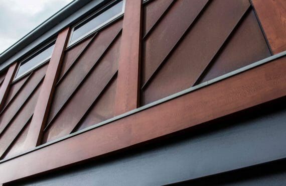 St Ninian’s Road Installer: SRC Roof Artists Cladding profile: Standing Seam and Flatlock Material: Natural Copper