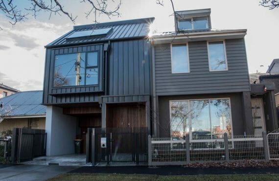 Highett Street Townhouse Installer: C.M.C Roof Plumbing Cladding profile: Nailstrip Material: COLORBOND® Monument®